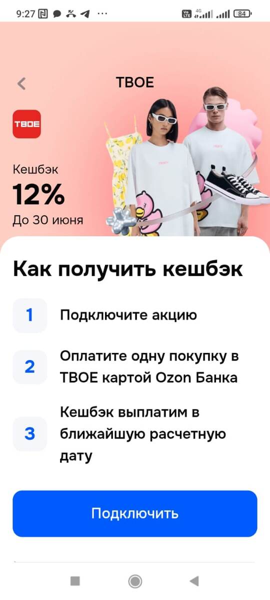 Озон Банк дает кэшбэк 12% на покупку в магазинах ТВОЕ