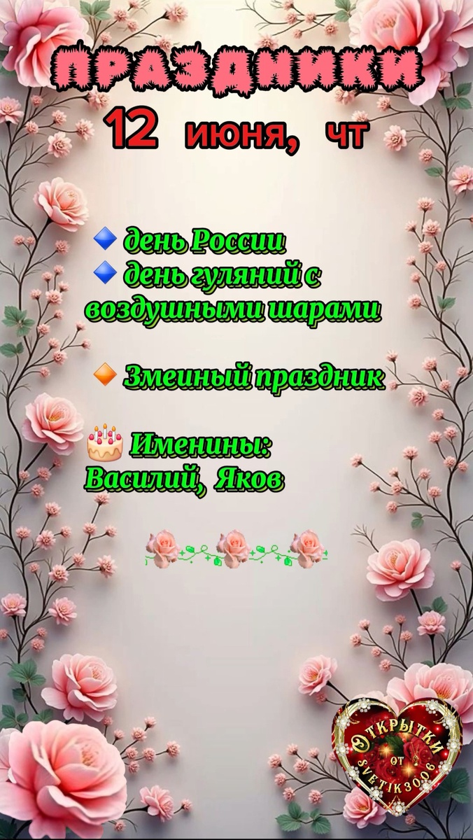 🔸️Змеиный праздник. В этот день змеи устраивают свои свадьбы — выползают из укрытий и исполняют загадочные "обрядовые танцы", подыскивая пару. Старинная поговорка гласила: "Не ходи в этот день в травы, не тревожь лесные чащи, не пытай судьбы".