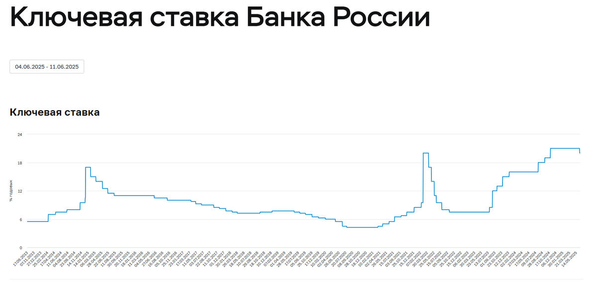Центробанк снизил ключевую ставку впервые за последние два года. На сегодняшний день никакой роли 1 процент не сыграет для покупателей недвижимости, ипотека на рыночных условиях, как и прежде, остается роскошью. Но что будет дальше с ставкой ЦБ и как это отразится на стоимости недвижимости? Открыв график на сайте ЦБ мы можем вспомнить как обстояли дела в конце 2014-го и 2022 году, когда ключевая ставка резко пошла вверх, а также можем проанализировать, как относительно быстро снижалась до прежних значений. Так вот, с пиковых 17,5% в январе 2015 до 11% годовых, снижение произошло в 4 этапа, за 7 месяцев. В 2022 году с пика 20% в апреле к 8% годовых, пришли всего за 4 месяца, уже к 1 сентября. И ключ 7,5% был с нами на протяжении почти года. Далее, с июля 2023 и по июнь 2025 ключевая ставка ЦБ только росла и ни разу не опускалась. Совет директоров Банка России 6 июня 2025 года принял решение снизить ключевую ставку на 100 б.п., до 20,00% годовых. Буквально за полторы недели до очередног