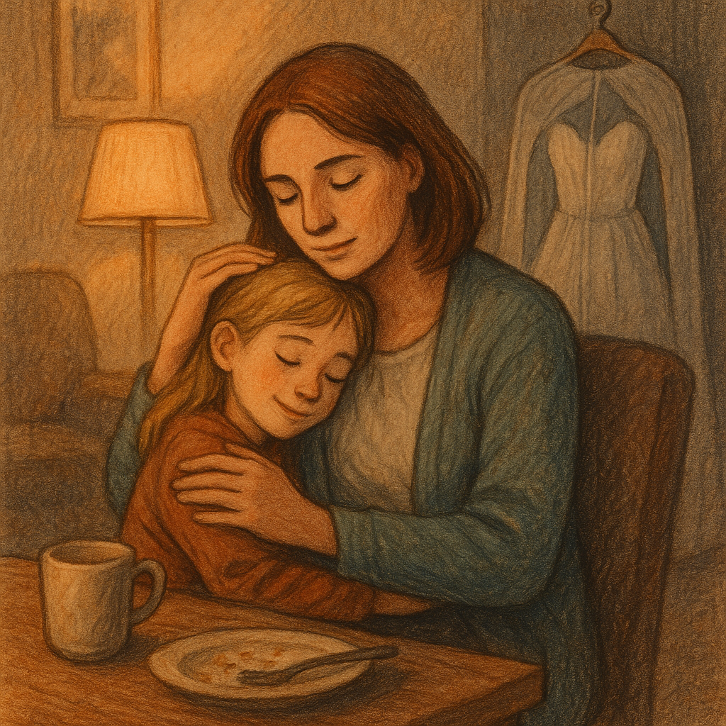 Во дворе дома Светы повезло: подруга как раз выходила в магазин. Слава на ходу передала ей Лену, коротко объяснила, что та уже поела в школе, и попросила — если будет время, позаниматься с дочкой математикой. Света кивнула, Лена, хоть и ворчала, что не увидит «мамино волшебное платье дома на вешалке», всё же пошла спокойно.