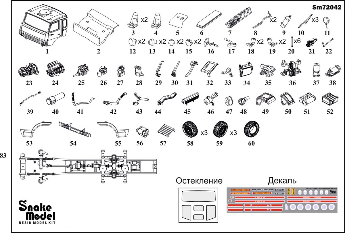 Snake Model из Москвы показала раскладку деталей на будущую новинку КамАЗ-53501 с капсулой 501 в масштабе 1/72 из полиуретановой смолы
