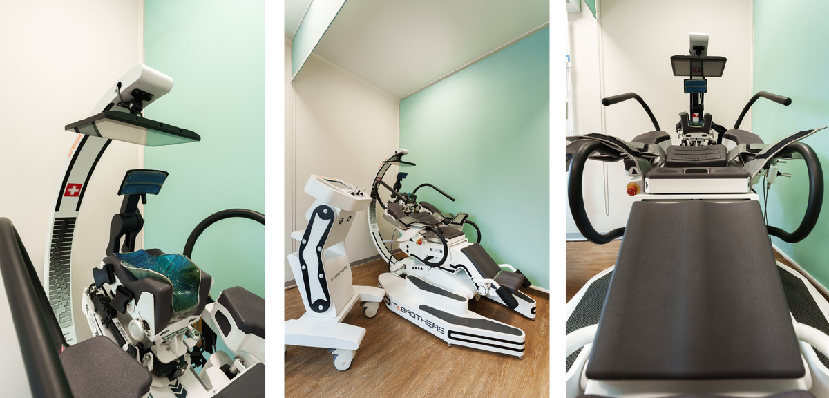 Ортопедическая система Robospine позволяет мягко и безопасно вытягивать позвоночник в строго контролируемом режиме. Сначала пациент прогревается инфракрасным теплом на кровати CERAGEM, затем укладывается на стол Robospine, где его тело фиксируется ремнями. Далее происходит локальное растяжение позвоночника.