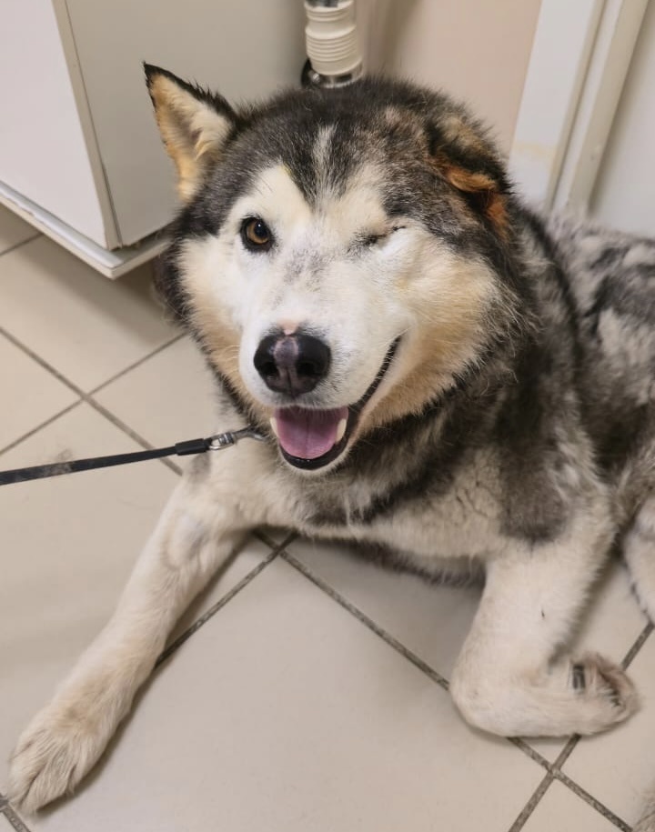 Вытекший глаз удалили, поскольку он мог стать источником инфекций - но как только мы снимали ему защитный воротник, он начинал со всей силы чесать лоб, даже когда шов уже зажил..