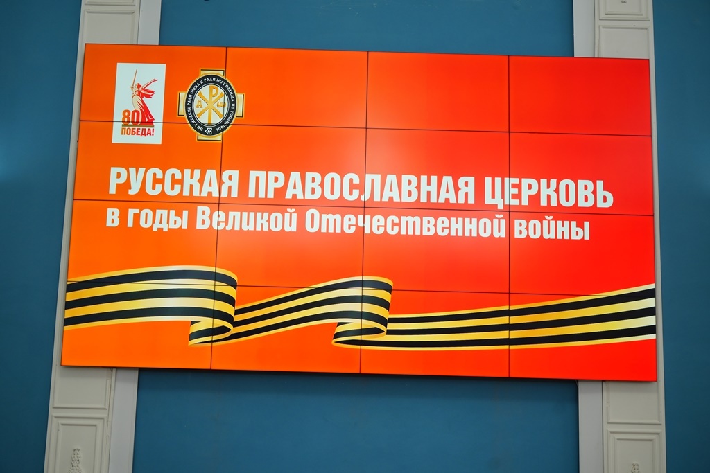 В экспозиционный ряд вошло около 10 стендов - представлены архивные материалы, фотографии, связанные с жизнью Русской Православной Церкви в 1941-1945 г., с деятельностью Патриархов Московских и всея Руси Сергия и Алексия I. К началу Великой Отечественной войны над Русской Православной Церковью (РПЦ) нависла угроза полного уничтожения. Советская власть проводила политику искоренения религии, и казалось, что вскоре от Церкви не останется и следа. 22 июня 1941 года митрополит Сергий выступил перед верующими и призвал их к стойкости и вере в победу. РПЦ проводила молебны о победе и оказ