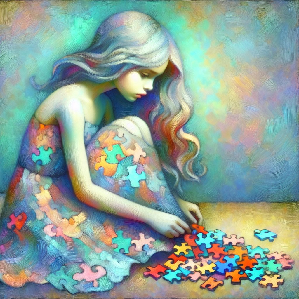 Приветствую Вас! Хочу поделиться с вами историей собирания себя. Это История о возвращении внутренних ресурсов. Будет три истории – детство, юношество, взрослая жизнь. Эти истории будут не просто описательными, но и наглядными. Я использую изображения, которые я сама создавала с помощью ИИ. Я не использую чужие изображения. Но был период я испытывала внутреннее сопротивление, начинать новое, погружаться в рисование, через описание словами. Но потом я испытала вдохновение, любопытство, трепет. И даже познакомилась с теми, кто занимается этим видом творчества. Я пишу сейчас о возвращенных ресурсах, моих личных пазлах. ВЫ любите собирать картинки из пазлов? Я начинаю с вами сегодня этим заниматься. Первая часть – детство. Когда ресурсы - это пазлы. Пазлы – это метафора ресурсов, которые вы спрятали в детстве. И забыли про них. Иногда ребёнку приходится рано повзрослеть. Не потому что он этого хочет, а потому что иначе никак. У него внутри много эмоций и он ими делиться. Ребенок познает но