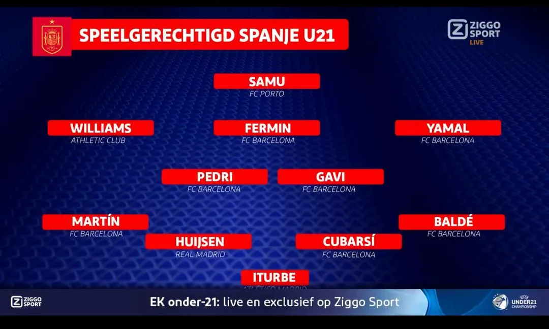 В эти дни в Словакии стартовал молодежный чемпионат Европы. В нем участвуют шестнадцать сильнейших сборных − Словакии, Нидерландов, Испании, Украины, Дании, Германии, Португалии, Франции, Италии, Польши, Румынии, Словении, Англии, Чехии, Финляндии и Грузии. Испанцы попали в группу А вместе с итальянцами, румынами и словаками. Во время превью Евро-2025, нидерландский канал Ziggo Sport представил, как бы выглядела сборная Испании, если бы в нее вызвали сильнейших подходящих по возрасту. Получилась команда, которая смогла бы дать бой любой сборной мира. Просто оцените, игроки какого уровня в нее могли бы попасть: Алехандро Итурбе («Атлетико»); Жерар Мартин («Барселона»), Дин Хейсен («Мадрид»), Пау Кубарси («Барселона»), Алекс Бальде («Барселона»); Педри («Барселона»), Гави («Барселона»); Нико Уильямс («Атлетик»), Фермин Лопес («Барселона»), Ламин Ямаль («Барселона»); Саму Агехова («Порту»). Сегодня испанцы вот в таком составе с трудом одолели хозяев словаков − 3:2.