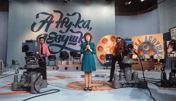⏳Ведущая Кира Прошутинская во время съемок передачи «А ну-ка, девушки!»