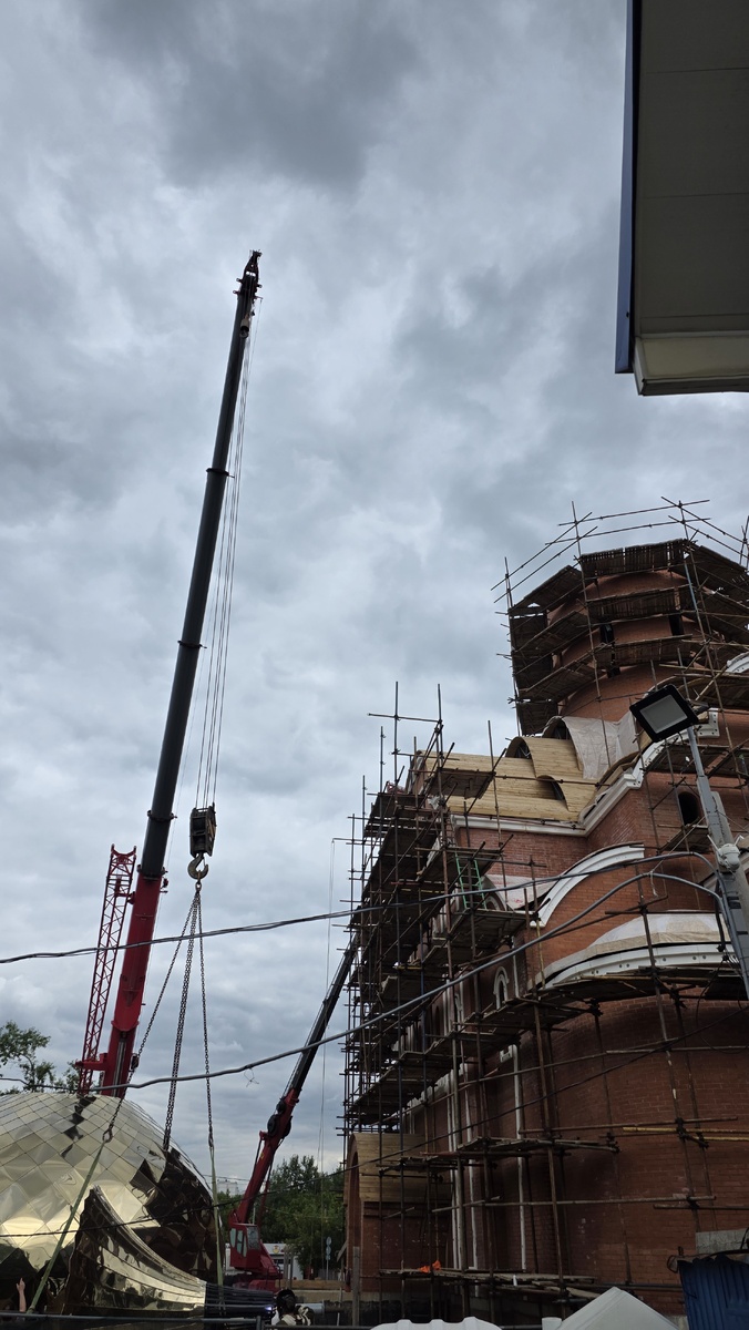 11.06.2025 года на строящийся храм сщмч. Серафима, митрополита Петроградского был установлен главный купол. Купол устанавливался с 10-00 утра до 20-00 вечера. Для того чтобы на останавливать работы по отделки фасада барабана декоративными панелями и ввиду сложного технологического процесса установки купола, было принято решение о подъеме главного купола на храм в этот день. Прихожан храма и жители района Южное Бутово приняли молитвенное участие в этом важном мероприятии. 14.06.2025 года в 11-30 в храме будет освящен главный Крест храма, который будет в этот же день установлен на купол храма. Так же будут освящены два малых купола с Крестами. Приглашаем к молитвенному участию в этом историческом событии для прихода и района Южное Бутово.