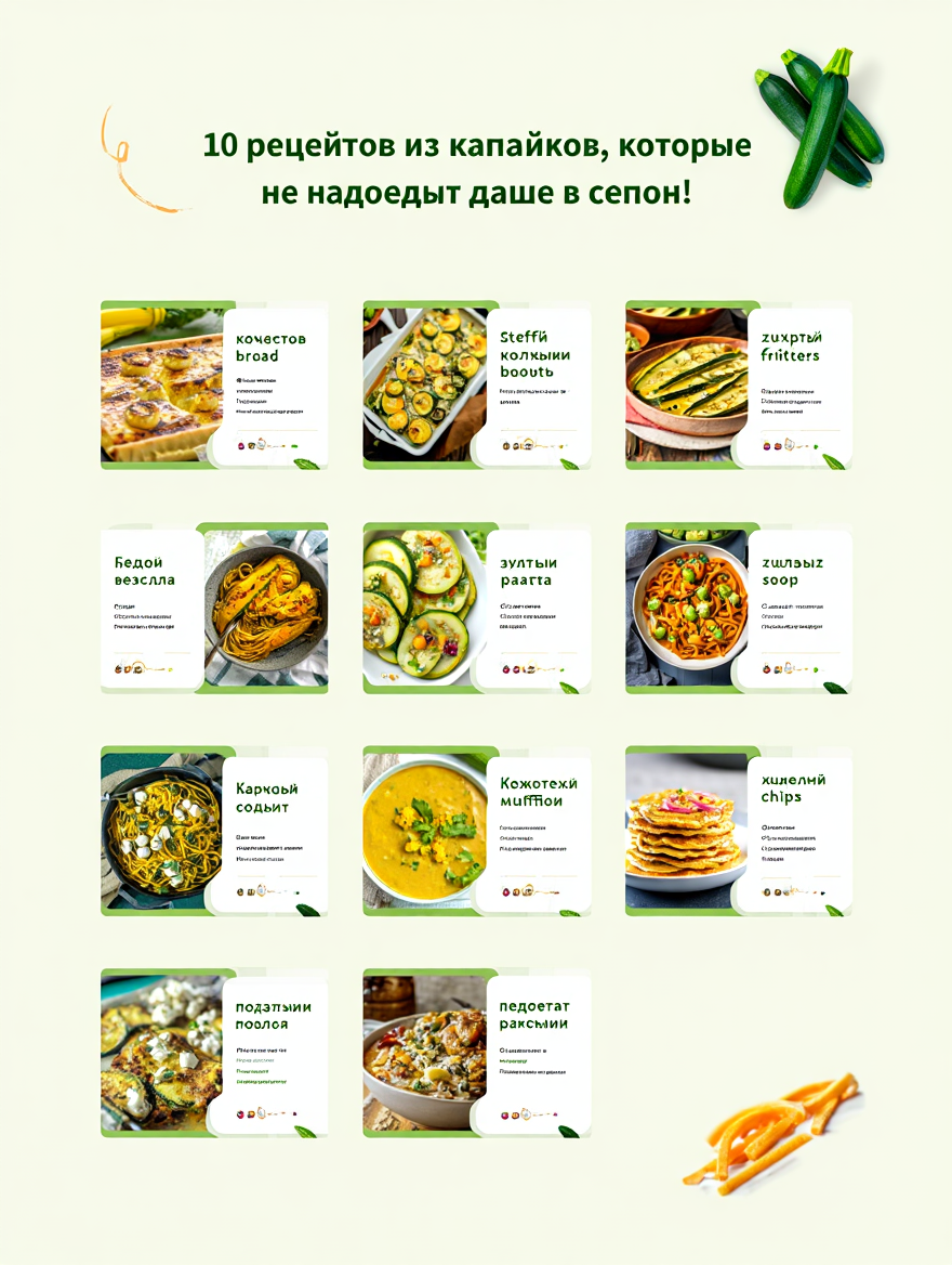 «Кабачки заполонили кухню? Не спешите делать очередные оладьи! Эти 10 рецептов превратят их в изысканные блюда — от закусок до десертов. Проверено на моей семье: муж даже не понял, что ест кабачки в сладком пироге!»