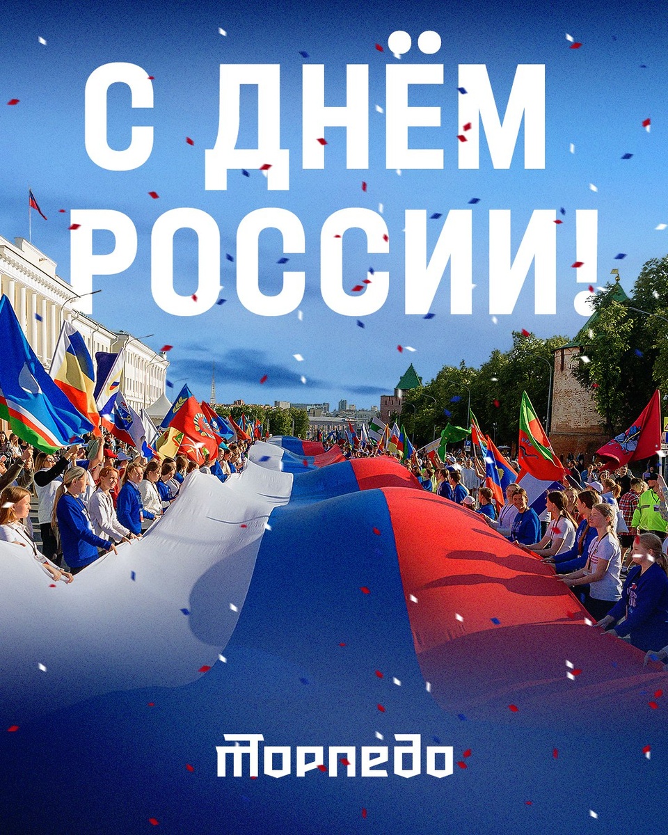 Хоккейный клуб «Торпедо» поздравляет болельщиков с Днём России 🇷🇺 Всем нашим согражданам - здоровья, счастья и процветания! Желаем каждому добиваться побед и поставленных целей, чтобы личный успех каждого складывался в общие успехи нашей любимой и необъятной Родины ✊ С праздником, дорогие друзья 🤝