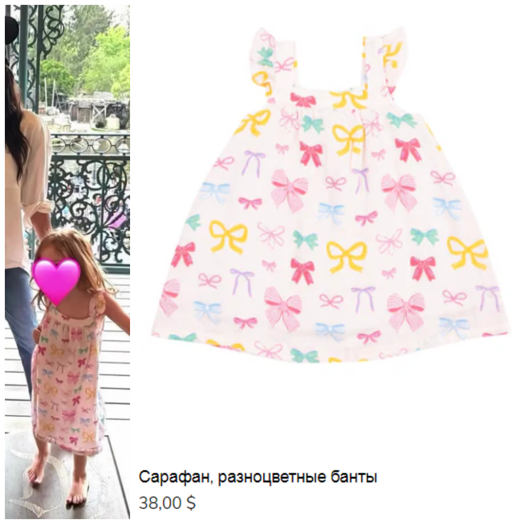 Одежда Лили тоже стоит недорого, сарафан «Разноцветные банты» стоит 38 долларов – 35% скидка