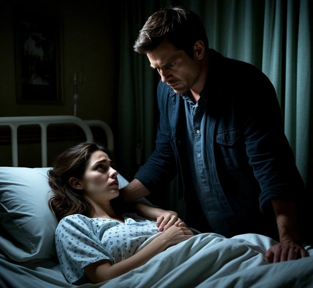 Максим неуверенно шагнул внутрь, оглядывая больничную палату. Белые стены, запах антисептика, капельница у её кровати — всё это, казалось, смущало его. Он присел на край кровати, потрёпанный, с небритыми щеками и тёмными кругами под глазами.