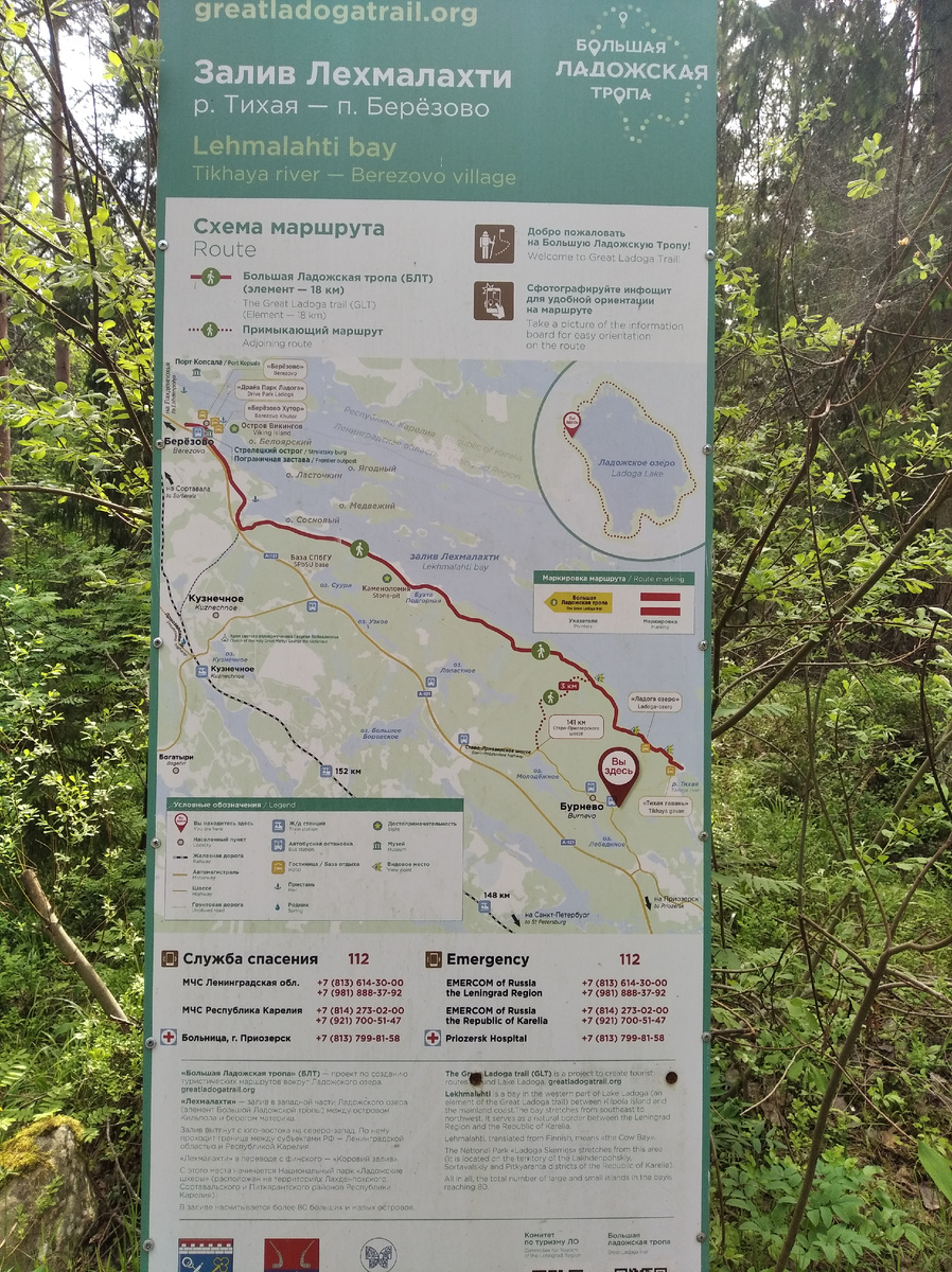 И здесь же стоит первый стенд-карта, рассказывающий о Большой Ладожской тропе, она же Лехмалахти.