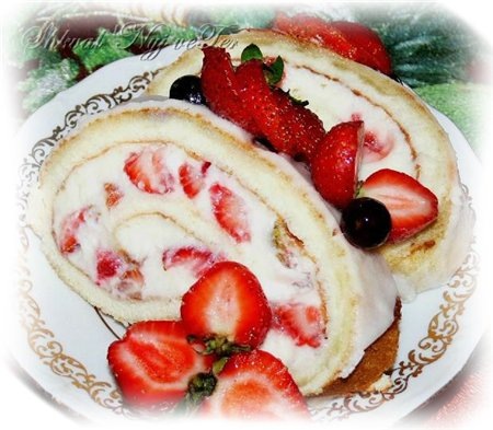 Рецепт этого рулета со мной ещё со школьных времён. Это первое, что я в своей жизни научилась печь. С тех пор очень люблю этот рецепт за простоту приготовления и универсальность - меняй начинки и каждый раз получай совершенно новый вкус. - 3 яйца - 1 ст. сахара - 1 ст. муки - 1/3 ч.л. соды 1ч.л. уксуса 9% - 300-400г. свежей клубники + 100г для украшения - 250-300г. сливок для взбивания - 1/2 ст. сахарной пудры Взбить яйца до посветления, затем добавить сахар и взбивать ещё 5-7 минут до пышной светлой массы и полного растворения сахара. Миксер выключить и добавить просеянную с содой муку, аккуратно вмешать лопаткой в тесто. Добавить уксус и перемешать ещё раз. На противень постелить бумагу для выпечки и вылить тесто, равномерно распределить и выпекать при 175-180Ц в течение 15 минут (время может отличаться в зависимости от особенностей духовки, главное не дайте бисквиту пересушиться, он должен только слегка зарумяниться, но при этом остаться мягким). Вынуть противень из духовки, биск