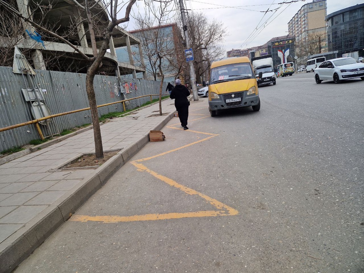 ©Уважаемые городские службы! Пешеходный переход на пересечении улиц Гамидова и Гамзатова в Махачкале ежедневно используется сотнями жителей, включая мам с колясками и людей с ограниченными возможностями. К сожалению, на этом участке отсутствует необходимый пандус, который обеспечил бы безопасное и удобное пересечение дороги. Кроме того, рядом с переходом расположена автобусная остановка, где также отсутствуют пандус и съезды для колясок и инвалидных колясок, что создаёт неудобства и препятствует свободному перемещению для многих людей. Просим вас обратить внимание на данную проблему и рассмотреть возможность установки пандусов и съездов для обеспечения комфортного и безопасного передвижения всех горожан." #нам_пишут 🧐 На взгляд "Черновика", там же хорошо было бы обновить разметку. Как раз вчера в Правительстве РД было совещание на эту тему. Подписаться на "Черновик" 2.0 | Обратная связь: @chernovik_1_bot