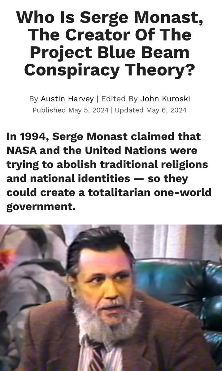 Serge Monast was a Canadian journalist who introduced the Project Blue Beam theory. He claimed archaeological alien artifacts would be “discovered” to support a false alien origin story and usher in a one-world religion.— Read More