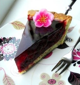 Этот рецепт понравится любителям фруктово-ягодных желе. Освежающее и лёгкое вишнёвое желе с ягодами на хрустящей песочной основе. На форму 27см. - 180г. масла (комнатной температуры) - 100г. сахарной пудры - 2 желтка - 250г. муки - щепотка соли - 15-20г. мака (по желанию) - 800г.-1кг. вишни - 200мл. воды - 170г. сахара - 2-3ст.л. коньяка - 30г. желатина+200мл. воды В миску положить размягчённое масло, сахарную пудру и взбить миксером до однородной массы. По одному добавить желтки, продолжая взбивать на небольшой скорости. Добавить просеянную муку и соль, перемешать миксером, до состояния крошки. Выключить миксер, добавить мак и замесить тесто. Оно получится очень нежным и мягким, не липнущим к рукам. Сформировать из теста лепёшку и завернуть в пищевую плёнку, убрать в холодильник на 30 минут. После чего тесто раскатать и очень аккуратно перенести в форму (я переношу прямо на силиконовом коврике), сделать бортики. Всю поверхность теста наколоть вилкой, выстелить поверх теста пекарс