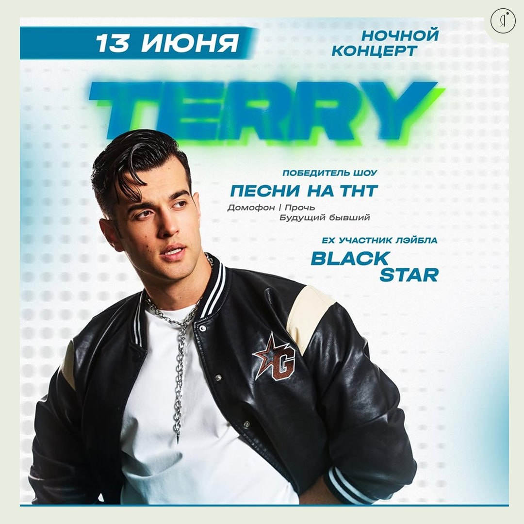 TERRY #Концерты #Вечером TERRY @ternovoy_oleg , он же TERNOVOY! Сольное клубное шоу победителя шоу песни на ТНТ, ех участник лэйбла Black Star — Terry! Приготовься танцевать под хиты «Домофон», «Прочь», и «Будущий бывший». Это вечеринка, о которой будут говорить! 13 июня | 23:00 Крыша, Кальвица, 14/1а 1000 руб. Билеты Online Якутия | Подписаться