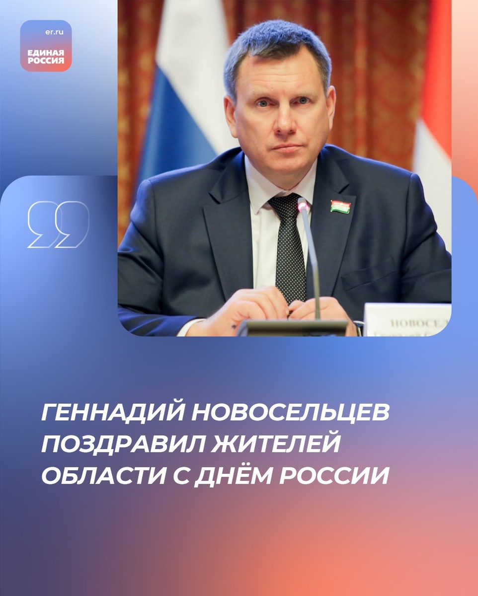 🇷🇺Председатель Законодательного Собрания Калужской области Геннадий Новосельцев поздравил жителей области с Днём России