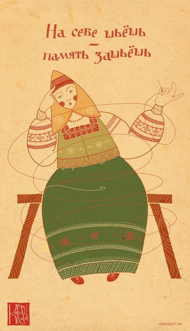 • «На себе шьёшь — память зашьёшь» — игла раньше считалась магическим артефактом. Шитьё на себе — вмешательство в судьбу. Можно и удачу прошить заодно