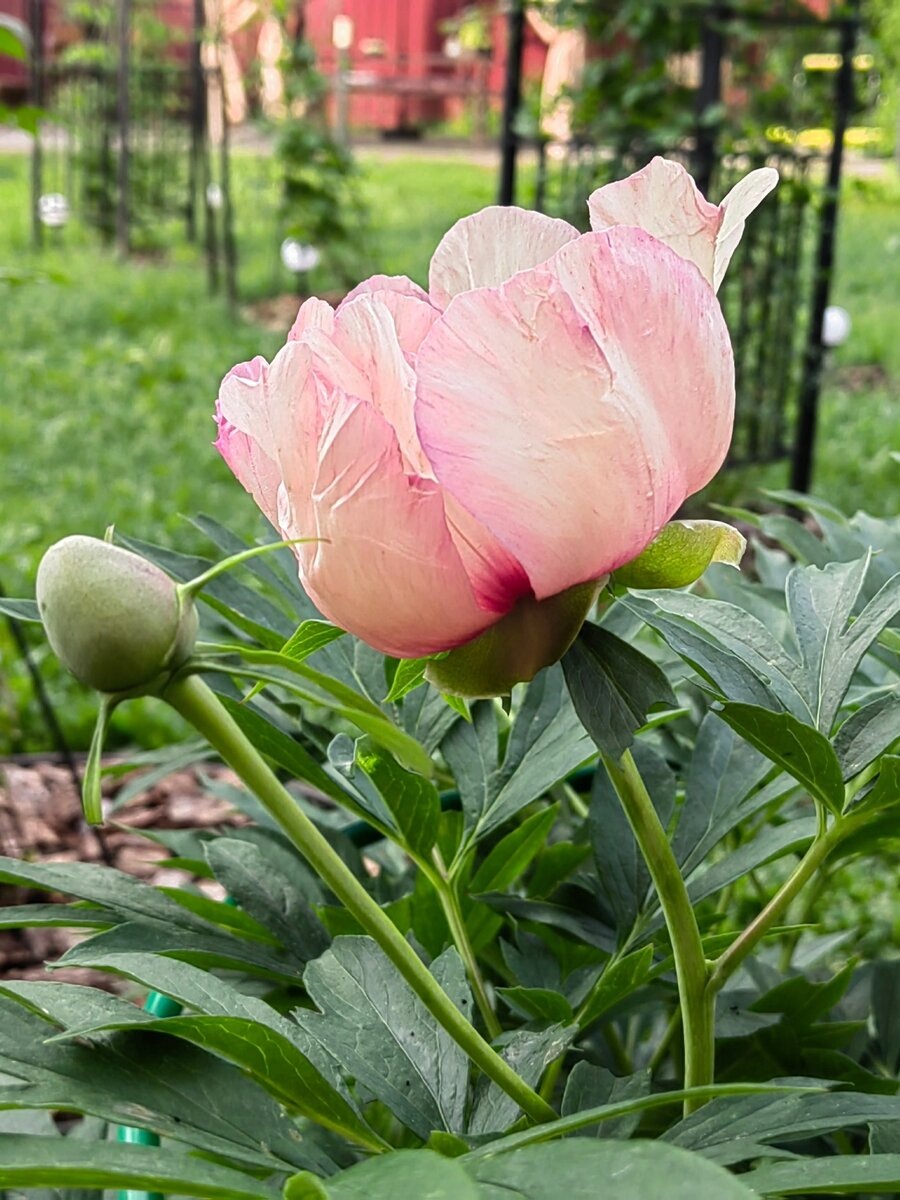 Самым первым неделю назад в моем саду распустился бутон на ИТО-гибридном пионе "Пастель Сплендор" (Pastel Splendor).