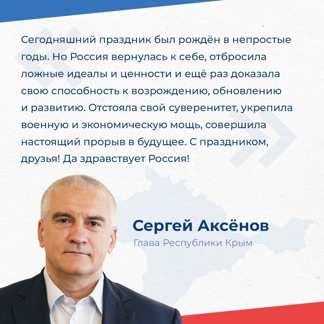 Глава Республики Крым Сергей Аксёнов поздравил жителей полуострова с Днём России