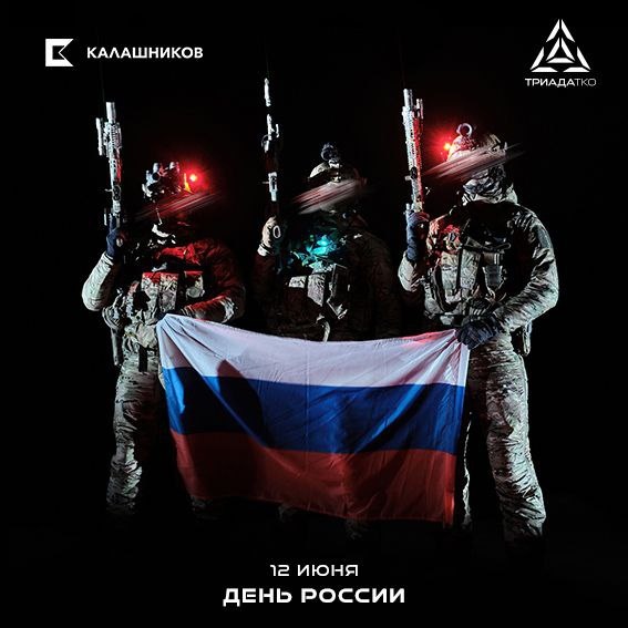 С Днем России! 12 июня - дата, которая стала официальной точкой отсчёта новейшей истории нашего государства. В настоящее время мы сталкиваемся с широким спектром современных вызовов и ищем пути для их решения. Приоритетом нашей деятельности является оснащение граждан, обеспечивающих безопасность нашего государства, комплексными решениями в области экипировки. Мы стремительно продвигаемся к достижению поставленной цели, это наш вклад в настоящее и будущее России. С уважением, команда «Триада-ТКО», концерн «Калашников»