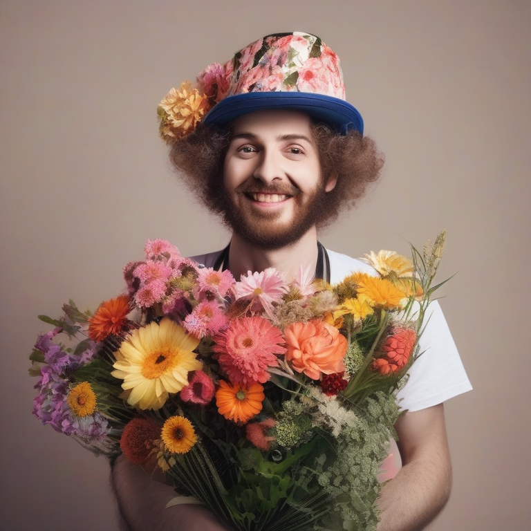 Мужчина, лет 40, мне казалось, он бывал пьяненький, мама говорит, что не пил, жил на таблетках. Одет обычно, на первый взгляд - рубашка, брюки, кирзовые сапоги, картуз, но у него, всё это, было украшено цветами и обязательно букет в руках. Свежие, красивые цветы. Дедушка нам строго-настрого запрещал с ним какие-то контакты, говорил, что он больной, неизвестно что на уме. Мне же, честно говоря, этот дядька нравился. Всегда в хорошем настроении, в руках букет цветов, идёт напевает что-то под нос. Увидев его на улице, напуганная дедом, сразу пряталась за воротами, чтоб не заметил, убегала в огород, там быстренько залезала на баню и от туда смотрела на это диво дивное. Второй - из взрослой жизни