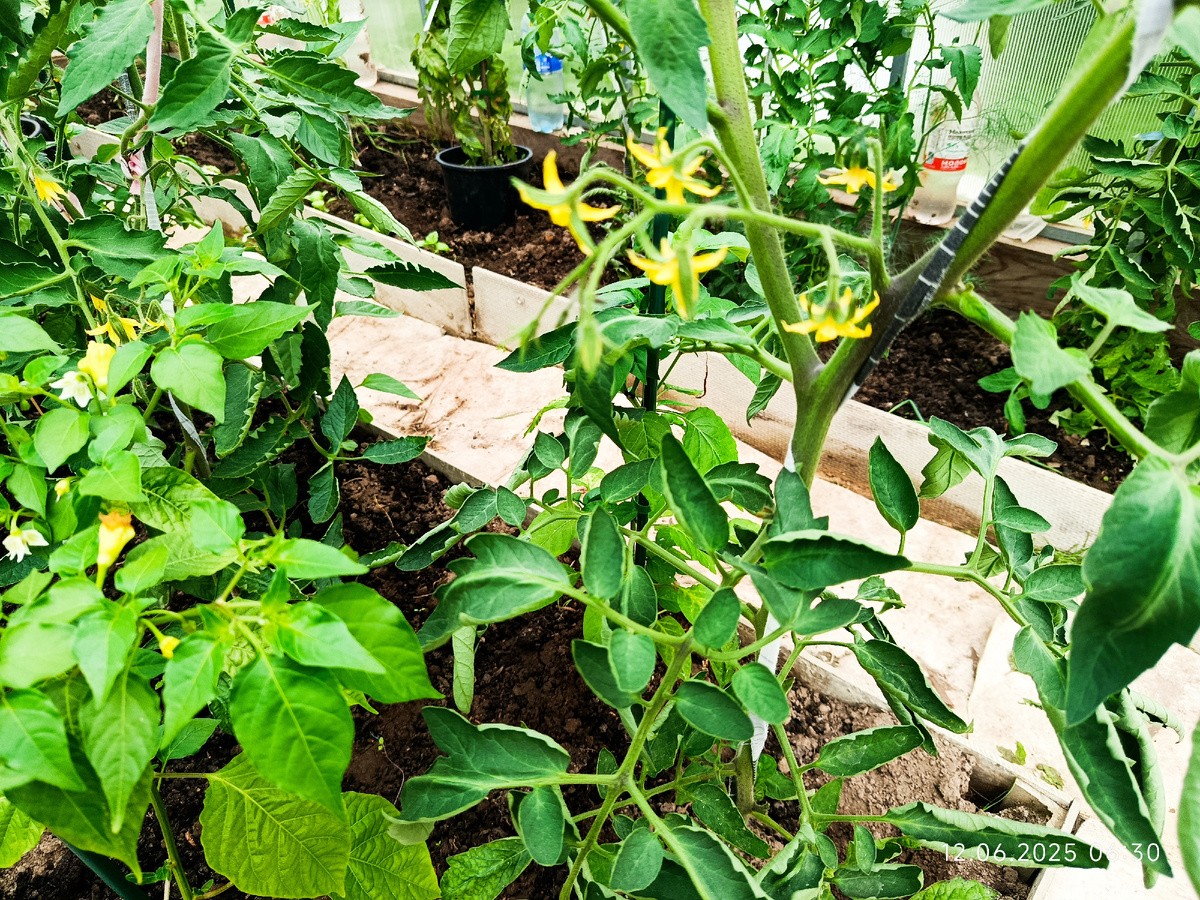Элементарное действие, которое и я забыла делать. И вам забыла рассказать-напомнить. И большой совет подписчикам про подкормки томатов в период цветения первой кисти. Доброго здравия всем огородникам! Поздравляю всех с началом действительно трудовой четырехдневки. Сейчас отмазов уже нет. И если мы хотим получить какой-то урожай, надо поработать. 🤗 И, чтобы в теплице через три дня после такого Увидеть вот такое Нужно ранним утром, часов до девяти, потрясти томатные кусты. Идём по проходам. Каждую верёвку берём и куст трясём. Пыльца внутри цветка падает и оплодотворение происходит. 😁 А здесь ⬇️ завязь уже есть! Скоро засохший цветок упадёт и покажутся горошинки завязей Я свои томатные кусты во время цветения ничем дополнительно не подкармливаю. Тем более неизвестными по действию "натуральными" растворами. Типа сыворотки, дрожжей или хлеба или комбинации из продуктов. В период цветения первых кистей томатные кусты очень уязвимы. И, если золотое правило для всего на огороде, это Расте