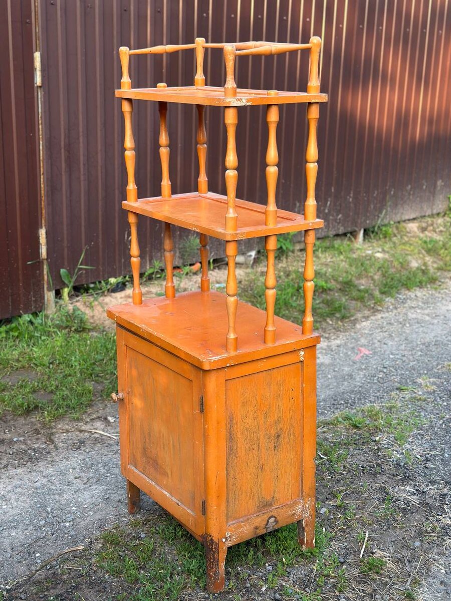 Всем привет. Кто рано встает... Ну вы знаете продолжение этой поговорки, актуальной во все времена. Так и сегодня вышло. Напоминаю: локация - поселок, в котором строительная компания выкупает дома. Их сносят, а потом построят ЖК. Хозяева, получив деньги быстро съезжают и оставляют порой очень занятные вещи, цену которым не знают или полученные деньги за землю (2,2 млн. за сотку+250 000 за строения) застилают глаза. Сегодня - прямо таки повезло. Прямо у контейнера со строительным мусором увидел стоящую этажерку: Состояние - просто идеал! Минимум реставрации: Ничего не рассохлось и не отсырело: Позади даже осталась этикетка: 1961 год! Теперь отвечаю на популярный вопрос - почему рано утром или почти ночью? Отвечаю - дело в том, что хозяева заканчивают переезд поздно вечером. И то, что не нужно оставляют у контейнеров или на импровизированных свалках. Демонстрировал это неоднократно. Часов в 6 утра появляются люди с тележками, которые сметают почти все! Нужно опередить... Данная этажерка