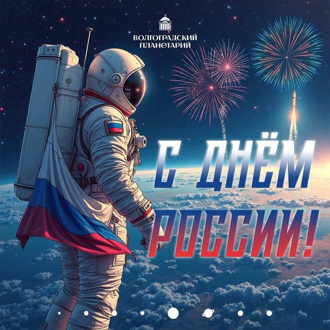 ................................. С ДНЕМ РОССИИ! 12 июня - День России — государственный праздник в честь принятия в 1990 году Декларации о государственном суверенитете РСФСР ................................. ⠀ ⠀ Дорогие друзья! ⠀ В этот особенный день — День России — от всей души желаем вам гордости за нашу великую страну, её славную историю и яркое будущее. Пусть под мирным небом, среди бескрайних просторов нашей Родины, всегда живёт согласие, доброта и взаимопонимание. ⠀ Как космос полон тайн и возможностей, так и Россия открывает перед нами бесконечные горизонты для развития, творчества и новых свершений. Пусть в каждом доме царят счастье и благополучие, а в сердцах — любовь к родной земле. ⠀ С праздником! С Днём России! ⠀ ⠀ ⠀ С любовью, Волгоградский планетарий ❤ 🚀 Космос ближе, чем кажется - ПОДПИСАТЬСЯ - Волгоградский планетарий