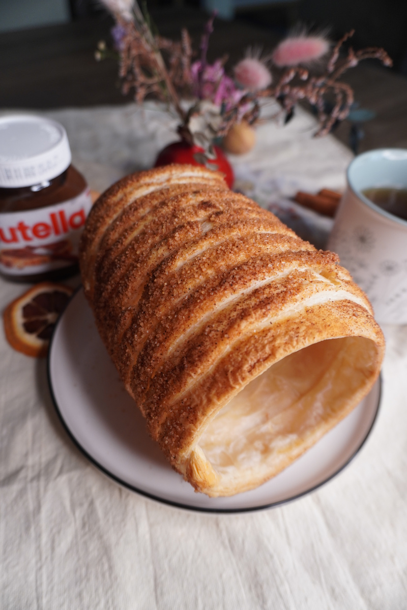 Всю зиму обещал жене съездить в центр и угостить ее на ярмарке вкусным, теплым, сладеньким трдельником, но вместо этого съездил 5 раз на зимнюю рыбалку... В итоге ярмарка уехала, а леща я заполучил и летом, поэтому готовим трдельник дома... Ингредиенты на 2 трдельника: Тесто бездрожжевое слоеное — 500 гр (2 пласта) Сахар тростниковый — 6 ст/л Корица молотая — 2 ст/л Бутылка стеклянная / толстая деревянная скалка Приготовление: Шаг 1. Стеклянную бутылку 0,7 или деревянную скалку покрываем фольгой. Шаг 2. Сахар размешиваем с корицей и высыпаем на большую плоскую тарелку. Шаг 3. 1 пластину теста немного раскатываем и режем на полоски 1-1,5 см шириной. Этого теста хватит ровно на 1 трдельник. Шаг 4. Оборачиваем бутылку или скалку полосками теста внахлест друг на друга. Шаг 5. Прокатываем тесто по сахару. Если на тесте много муки после раскатывания, можно его чуть брызнуть водой, чтобы сахар лучше прилипал. Шаг 6. Выпекаем в разогретой до 180 °С 25 минут. Чтобы кайфануть на 1001