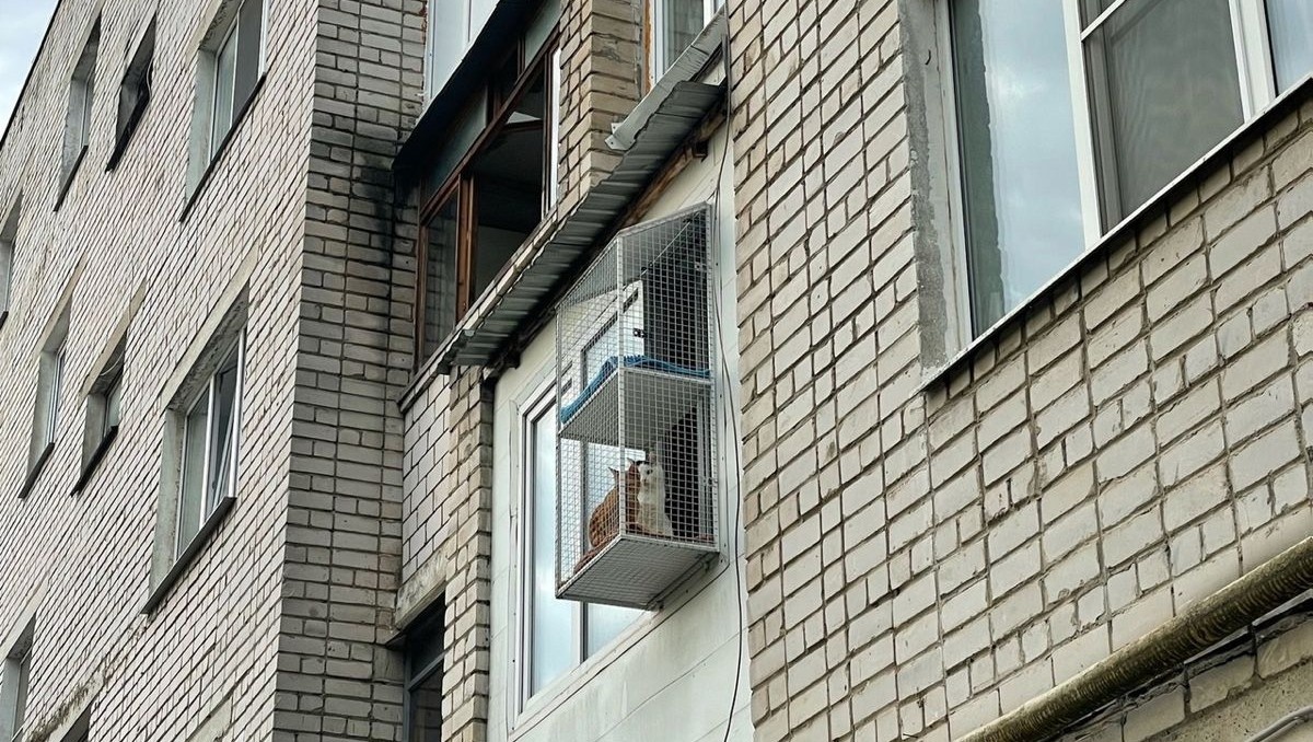 В селе в Калининском районе Тверской области на окне многоквартирного дома можно увидеть замечательный маленький балкончик. Это ни что иное, как место отдыха хвостатых подопечных волонтера тверской Инициативной группы по защите животных Ирины.