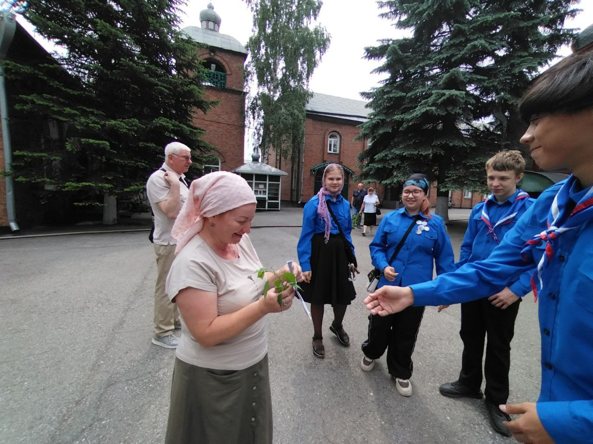 После праздничного богослужения молодежь из отряда Братства православных следопытов 2-го Новокузнецкого благочиния раздавали прихожанам информационные буклеты о празднике Святой Пятидесятницы.