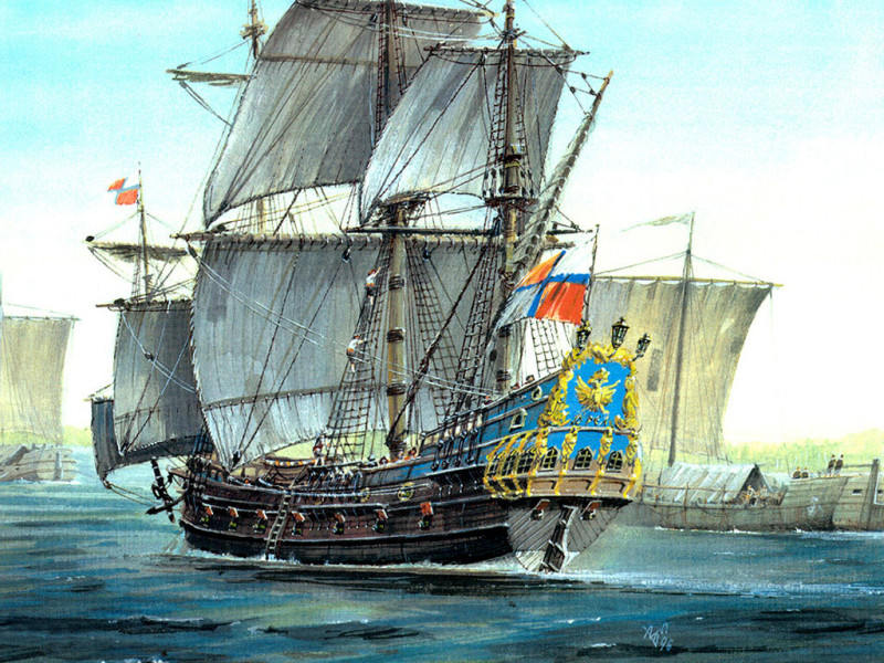 В 1695 году в Амстердаме было издано сочинение Карла Алярда «Новое голландское корабельное строение», в котором приведены корабельные флаги морских держав того времени, в их числе три московских. По повелению Петра I сочинение было переведен