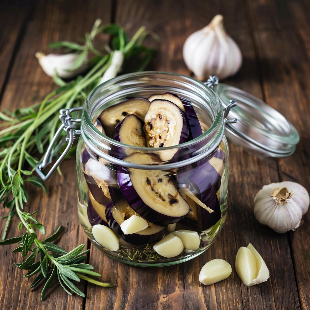 Рецепт баклажанов жареных и маринованных с чесноком и зеленью пошагово выглядит следующим образом: Ингредиенты: - Баклажаны — 4–5 шт.; - Чеснок — 4 зубчика; - Зелень петрушки/укропа/сельдерея — небольшой пучок; - Растительное масло для обжарки; - Уксус столовый (или яблочный) — 2 ст.л.; - Сахар — 1 ч.л.; - Соль — по вкусу; - Вода — примерно полстакана. --- Пошаговая инструкция приготовления: Шаг 1. Подготовка ингредиентов Очистите баклажаны от кожуры (это необязательно, можете оставить), порежьте кружочками толщиной около 7 мм. Шаг 2. Обжаривание баклажанов Разогрейте сковороду с растительным маслом. Обжарьте кружочки баклажанов с обеих сторон до золотистой корочки. Дайте слегка остыть. Шаг 3. Маринад Приготовьте простой маринад: - Разведите уксус в холодной воде; - Добавьте сахар, соль и перемешайте , вскилятите. Шаг 4. Чеснок и зелень Зубчики чеснока очистите и измельчите ножом либо пропустите через пресс. Петрушку мелко нарубите. Шаг 5. Соединение компонентов Поместите обжар