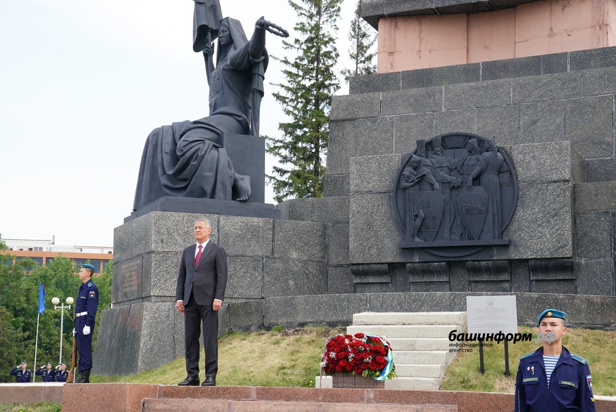 12 июня Глава Башкортостана Радий Хабиров принимает участие в праздничных мероприятиях, посвящённых Дню России, Дню Уфы и 271-й годовщине со дня рождения Салавата Юлаева. В День России руководитель республики возложил цветы к Монументу Дружбы, возведённому в честь 400-летия добровольного вхождения Башкортостана в состав Русского государства. Вместе с ним в церемонии также приняли участие председатель Минского городского исполкома Владимир Кухарев, члены правительства Башкирии, депутаты Госсобрания — Курултая республики, представители муниципалитета, министерств и ведомств, а также общественные деятели и почётные жители Уфы. Монумент Дружбы открыли 7 августа 1965 года. Авторами памятника стали московские скульпторы Михаил Бабурин и Галина Левицкая, архитекторы Евгений Кутырев и Геннадий Гаврилов. Монумент представляет собой две вертикальные стелы из розового гранита. Стелы имеют форму меча, который «закопан» рукоятью в землю. Высокие плиты скреплены тремя монолитными кольцами из серого