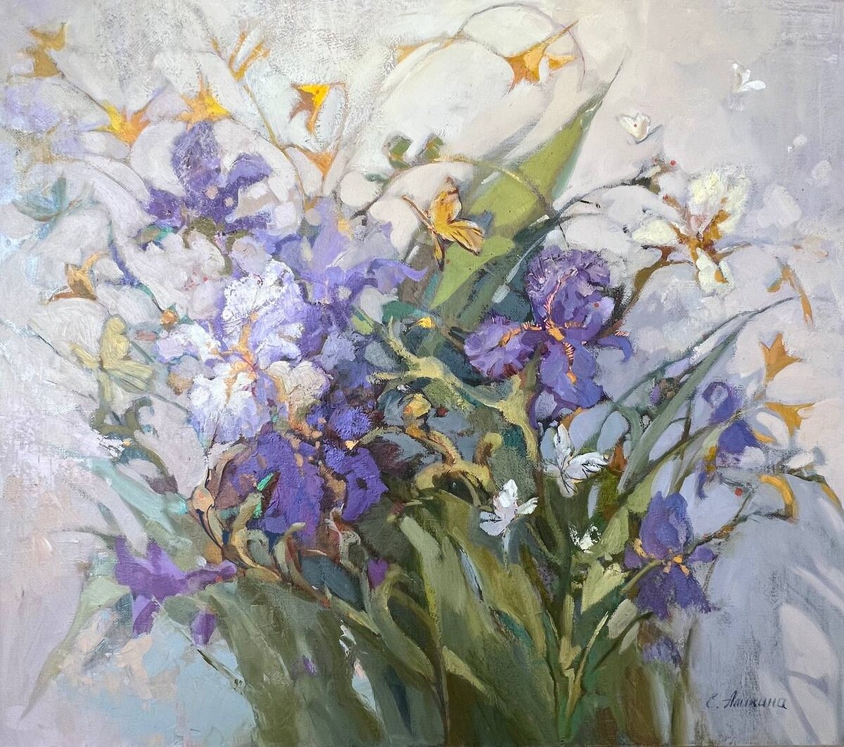 Цветы и бабочки 70х80 холст/масло 2025 ••• Картина Елены Аликиной «Цветы и бабочки» представляет собой классический натюрморт, но с абсолютно самостоятельной нотой. Елена в последнее время экспериментирует с декоративной живописью, пытаясь найти свое собственное пространство между реализмом и абстракцией. «Цветы и бабочки» захватывающий натюрморт, который при статичности объекта и внешнем спокойствии композиции наполнен внутренним движением. ••• Поразмышлять на тему многозначности летнего цветения можно на выставке «Цветы и лето» до 10 июля 2025. ••• Москва. Ходынский бульвар 20а, с 11:00 до 21:00 ежедневно. Выставка бесплатная, работы продаются. Вся контактная информация на сайте YOLKA.art
