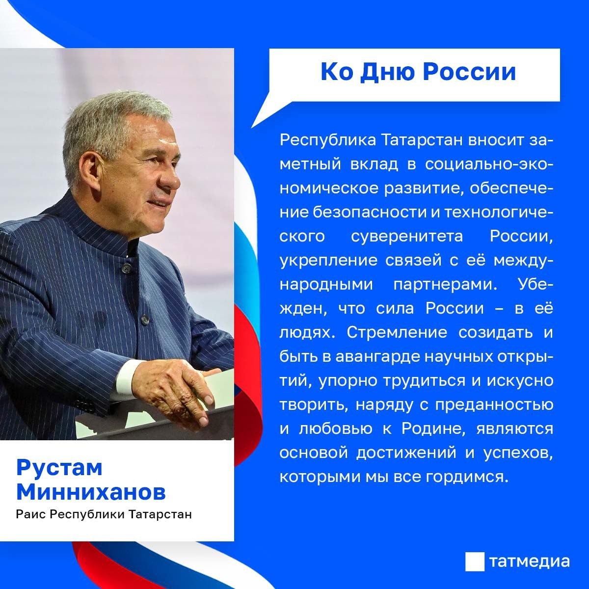 🇷🇺🇷🇺Раис Татарстана Рустам Минниханов поздравил жителей республики с Днём России