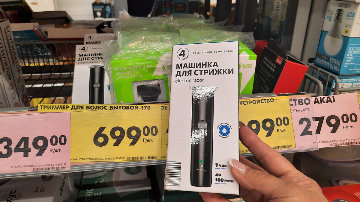 Триммер для волос 4 насадки 600 Вт цена 699 руб. Водонепроницаемая, беспроводная, до 100 минут работы, 4 насадки. Страна Китай.