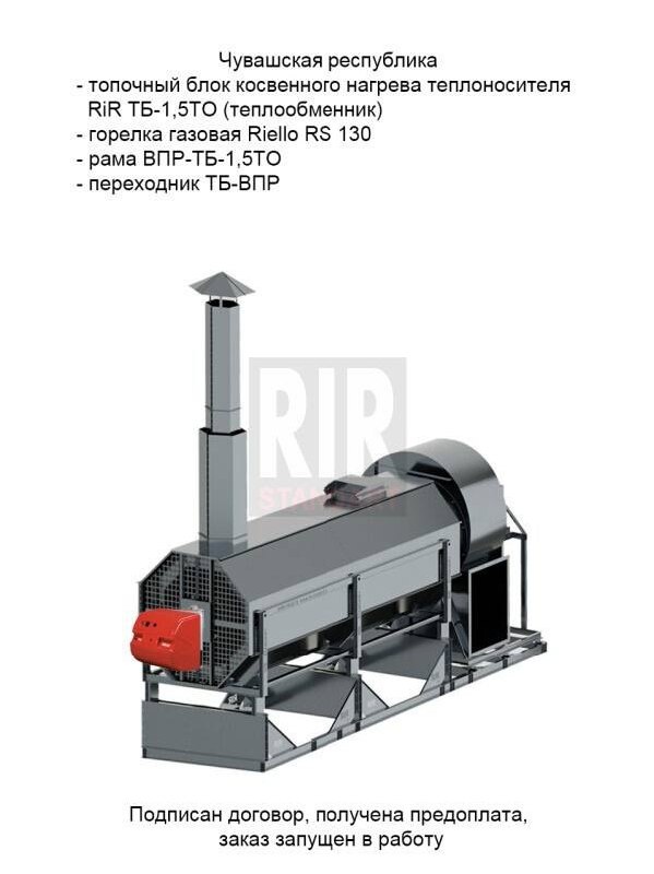 ПЕРЕГОВОРЫ О ПОСТАВКЕ ТОПОЧНОГО БЛОКА RIR ТБ-1,5ТО В ЧУВАШСКУЮ РЕСПУБЛИКУ Подписан договор, получена предоплата о поставке топочного блока косвенного нагрева RiR ТБ-1,5ТО (теплообменник) в Чувашскую республику. Состав заказа: - топочный блок косвенного нагрева RiR ТБ-1,5ТО (теплообменник) - горелка газовая Riello RS 130 Производительность зерносушилки во многом зависит от подрабатываемой культуры, объёма заполнения, способа подачи/движения теплоносителя, температурного режима. При соблюдении технологии сушки, полезного объёма теплоносителя 45 тыс. м3/ч, температурного режима не выше 90 °С, двухкратного заполнения тела зерносушилки, а также выдерживания толщины продуваемого слоя не более 140 мм топочный блок RIR ТБ-1,5ТО идеально подходит для зерносушилок от 15т/ч до 22 т/ч любых производителей. Более точный подбор в соответствии с вышеуказанными параметрами представления на сайте завода: https://rir-standart.ru/kompleksnye-resheniya #заводзерносушилок #рирстандарт #зерносушилка #то