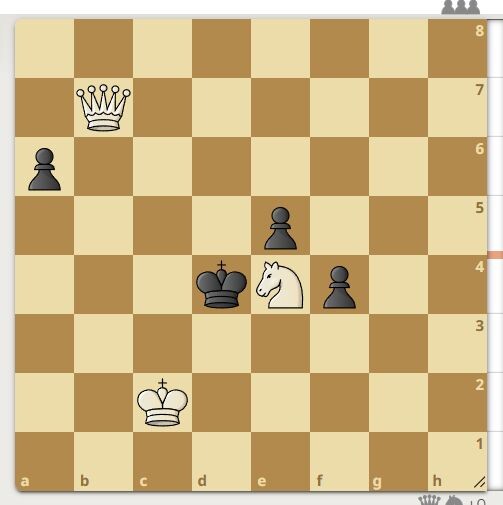 Автор задачи Н. Кащеев, 1973 год. Черные с тремя пешками. Белые имеют только ферзя и коня. Белые начинаю и ставят мат в 2 хода. Более мощная задача тут >>>> Первый верный ход в галерее. Подпишись на канал и поддержи автора.