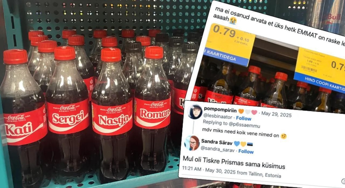 Вместо Марка, Элли и Давида на бутылках теперь Настя, Сергей и Дмитрий. Точнее Nastja, Sergei, etc. Однако пиарщики Coca-Cola объяснили, что при выборе имён опиралась на официальную статистику от... эстонских властей. А она, статистика, утверждает: самые популярные имена в Эстонии — Александр, Ольга, Сергей, Владимир, Андрей, Алексей и Ирина.