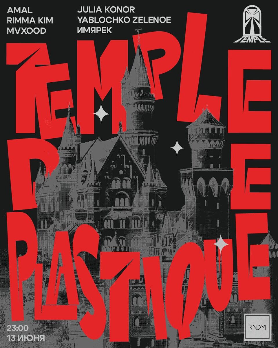 13.06 — Temple de Plastique в RNDM Возвращаемся в Москву после прекрасной ночи в Питере. Temple de plastique снова дома — и снова вместе. Никаких оснований для отказа не может быть, все прошло прекрасно в прошлый раз и романтично продолжится в эту ночь. Amal Mvxood Имярек Rimma Kim Julia Konor Yablochko Zelenoe 🎫 — tickets FC 18+ 📆 13 июня, в 22:30 📍 RNDM, Москва, Наставнический пер., 13/15с3