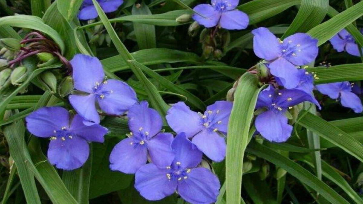 Многим это растение знакомо в качестве комнатной культуры, но не все знают, что существуют садовые разновидности традесканции. Они очень красиво смотрятся в цветниках, и неплохо переносят зимы, даже в средней полосе. В открытом грунте обычно выращивают только один вид - традесканция Андерсона. Это многолетнее растение, высотой до 80 см, с удлинёнными узкими листьями, образующими плотные, иногда округлые кустики. Интересно смотрятся сорта с необычной пёстрой окраской листьев. Цветы бывают белыми, розовыми, синими. Каждый цветок традесканции живёт не больше дня, но бутоны раскрываются постепенно, обеспечивая длительное цветение в течение почти всего лета. Точные сроки цветения зависят от сорта. Интересно, что увядшие лепестки не осыпаются, а закрываются, и остаются в семенной коробочке, поэтому участок вокруг традесканции выглядит аккуратно. В солнечную погоду цветки традесканции закрываются уже после обеда, в пасмурные дни держатся немного дольше - почти до наступления вечера. Поэто