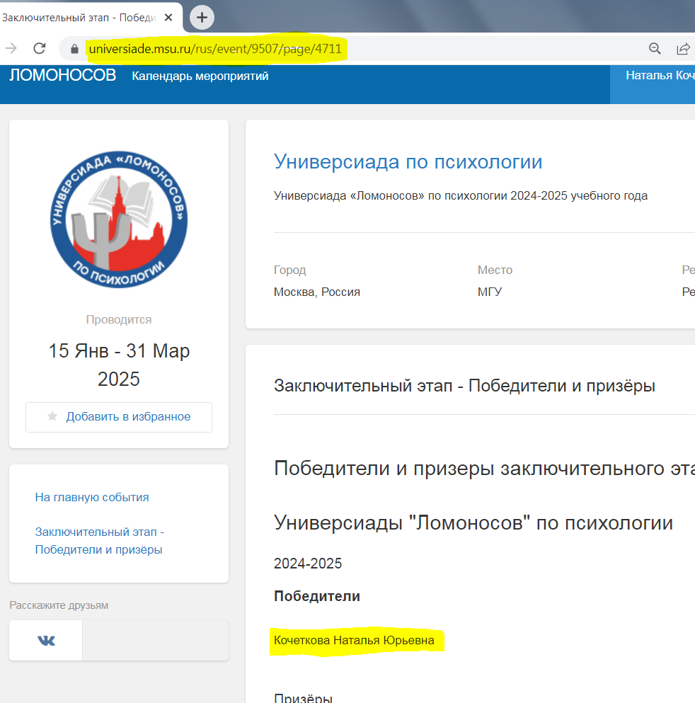 Я победила в Универсиаде МГУ по направлению "Психология" :-)