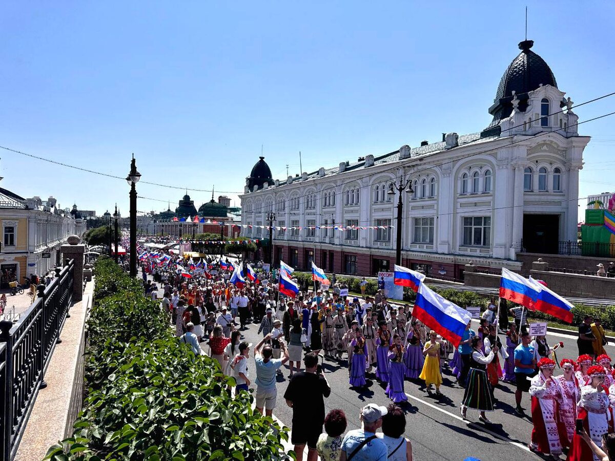 В День России в Омске проходит Парад национальностей Представителинационально-культурных объединений, творческие коллективы муниципальных районов Омской области, учреждений культуры Омска и студенческая молодежь прошествовалипо Любинскому проспекту от Юбилейного моста к площади Победы. Более двух тысяч человек в День России встали в праздничную колонну в национальных костюмах. Русские,белорусы, украинцы, казаки, казахи, татары, узбеки, курды, киргизы, башкиры, таджики, чуваши, азербайджанцы, немцы, латыши, эстонцы, поляки, финно-угры,армяне, корейцы, тувинцы, китайцы, индусы, пакистанцы исполняли свои национальные песни, приветствовали прохожих на своем родном языке. Парад национальностейстал прологом к масштабному форуму «Россия – это мы!», посвященному государственному празднику, который отмечает наша страна сегодня. «Форум«Россия – это мы!» – это уникальная возможность почувствовать себя частью огромной страны, познакомиться с культурой и традициями различных народов,провести вре