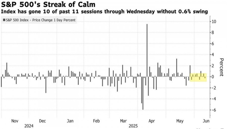 https://basechop.ru/wordpress/?p=45961 Рынки растут на слухах и падают на фактах. Долгое время котировки S&P 500 повышались благодаря уверенности инвесторов в заключении торгового соглашения США и Китая. И когда договор был подписан, началась фиксация прибыли по лонгам. Дональд Трамп объявил о заключении сделки. По ее итогам американские тарифы на поставки из Поднебесной составят 55%, китайские на поставки из Штатов – 10%. Министр торговли Говард Латник утверждает, что в деле была поставлена точка. Пошлины на импорт из Поднебесной больше расти не будут. Министр финансов Скотт Бессент объявил, что 90-дневная отсрочка в тарифах может быть продлена в отношении тех стран, которые добросовестно ведут переговоры с США. Эти спичи чиновников Белого дома стали продолжением прежней тактики, направленной на поддержание ралли S&P 500 при помощи громких заявлений. Рынок предпочел продавать факты. Дневная динамика S&P 500 Широкий фондовый индекс не был настолько спокоен с декабря. По итогам 11 и