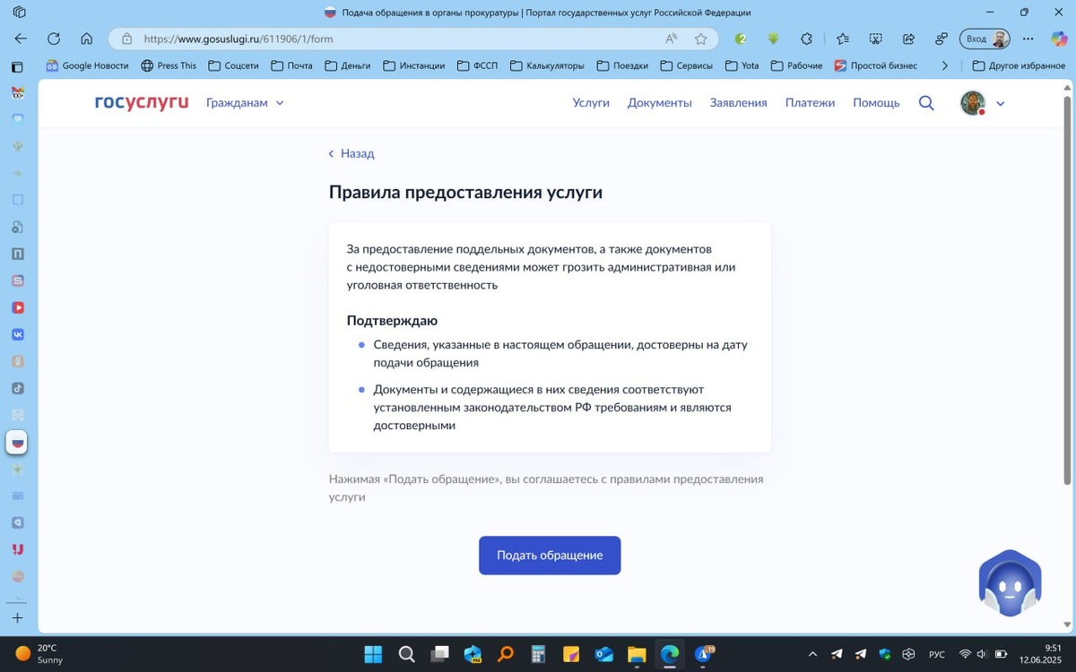 «Пользовательское соглашение с государством: вы согласны быть подозреваемым» Заголовок демонстрирует принцип правоотношений государства с человеком, как договор присоединения. Статья 428 Гражданского кодекса РФ договором присоединения признает такой, условия которого определены одной из сторон в формулярах или иных стандартных формах и могли быть приняты другой стороной не иначе как путем присоединения к предложенному договору в целом. К чему это я? Решил сегодня подать обращение в прокуратуру посредством очень не удобного сервиса "Госуслуги". Причиной тому — ограничение человеческих прав прокуратурой на подачу им обращений посредством ГАС через интернет-приёмную прокуратуры. Сейчас это могут сделать только те, кто зарегистрирован на сервисе "Госуслуги". Но даже все пользователи данного сервиса смогут подать обращение, т.к. для предоставления возможности подачи обращения, прокуратура требует предоставить ей доступ к следующим персональным данным: 1. Просмотр списка ваших организаций