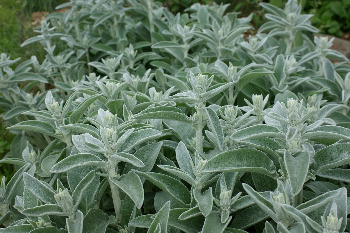 Всё жду, когда он мне надоест, и можно будет взять секатор и убрать цветоносы, ведь я изначально собиралась держать его в виде милого пушистого почвопокровника, чтобы гладить листочки, как котёнка, проходя мимо. Но не надоедает. Наоборот, с каждым днём любопытнее становится за ним наблюдать. Я всё откладываю и откладываю отрезку, потому что теперь у него появились бутончики. Тоже пушистые! Всё-таки чистец шерстистый – это очень заботливое растение, даже бутоны у него в шубках, не только листья. Тактильность зашкаливает. Затискать просто хочется! Когда же он превратится в неопрятное лохматое чудище, чтобы без зазрения совести скосить это всё и дожидаться, когда полянка снова превратится в густой бархатистый коврик? Зато вредители его не особо любят: кому же понравятся волосы в еде? Доберись ещё до той еды. Плюс полив не нужен – я вообще его не поливаю, разве что когда только посадила, в первое время. Чистец не расползается, но занимает площадь вширь. Чтобы он критично не налегал на